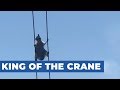 This raccoon saw a crane towering above a lake and decided to have a bit of an adventure. After climbing the hoist rope up to the top, they slid down the boom of the crane on their stomach.